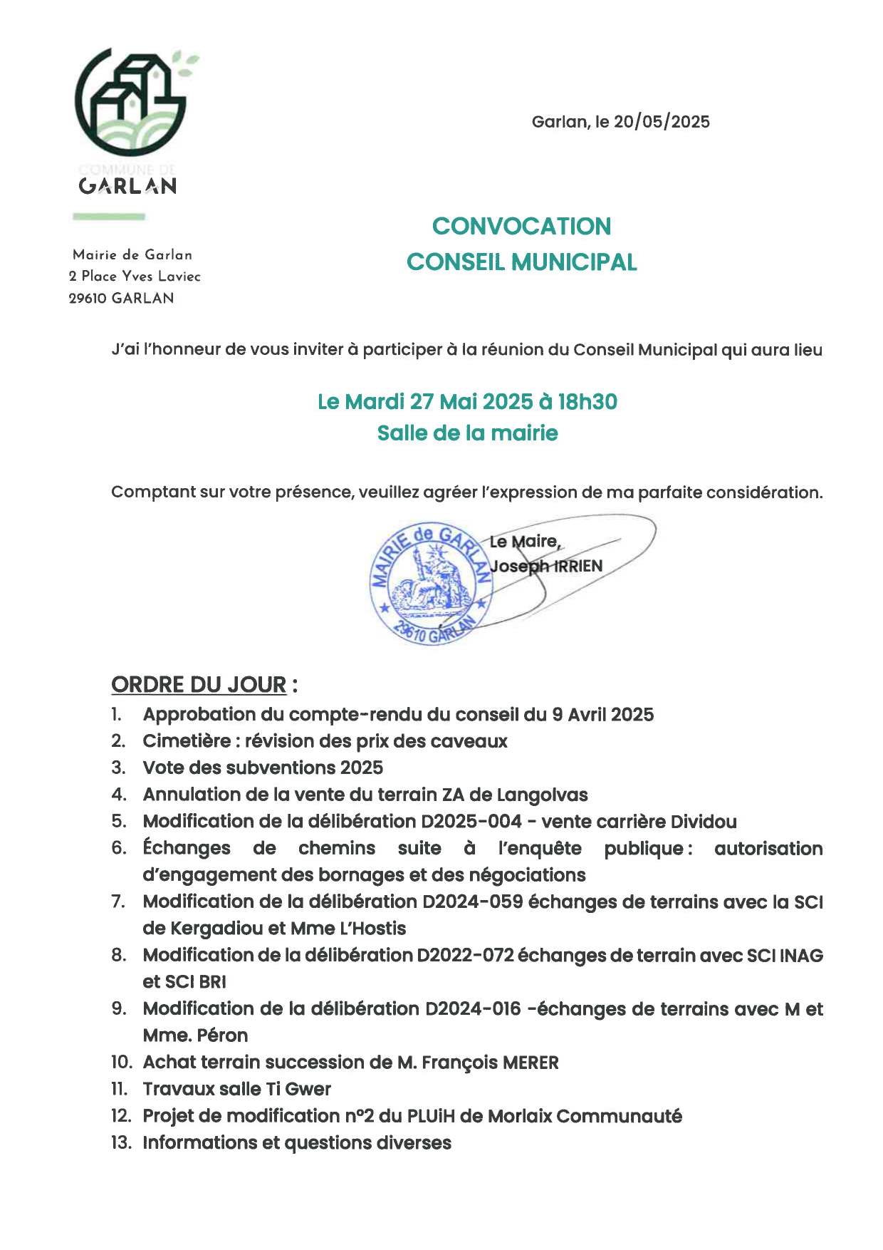 Monsieur Charles de Kermenguy, désigné comme commissaire enquêteur, a transmis à la mairie son rapport et ses conclusions (documents ci-dessous) :